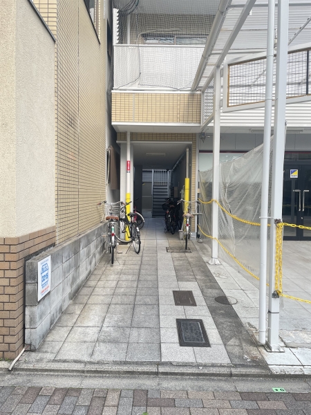 共用入り口はこちら、左右に駐輪ください