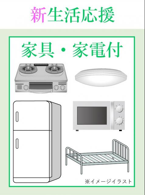 【家具・家電設備(中古)付き!(冷蔵庫・電子レンジ・2口ガスコンロ・居室照明・ベッドフレーム)】男性専用、女性専用の洗濯機が無料で利用可能♪TVモニターホンと防犯カメラのセキュリティ、民間ごみ回収導入のためいつでもゴミ出し可能です!【学生ハウジングの管理物件なので、設備トラブル、困りごと等の日常管理はもちろん、入居から退去まで学生ハウジングがサポートいたします!】