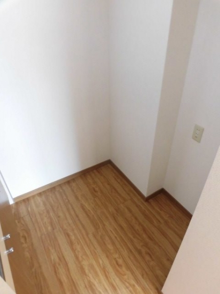 洗濯機置場の上に棚あり