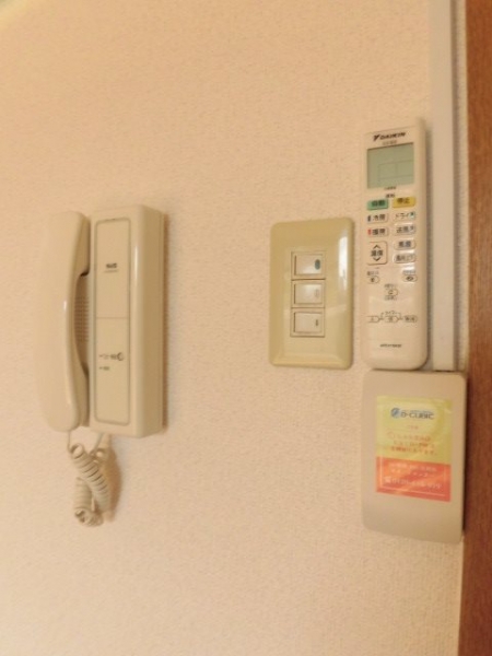 オートロック受話器とWi-Fi機能付きインターネット設備、エアコンのリモコンです
